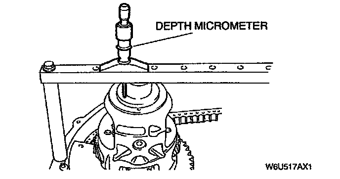 76. Use a depth micrometer to measure the distance from the top of the gauge bar to the face of the drive sprocket. Repeat on other side of the turbine shaft. Average these two numbers. This is dimension A.