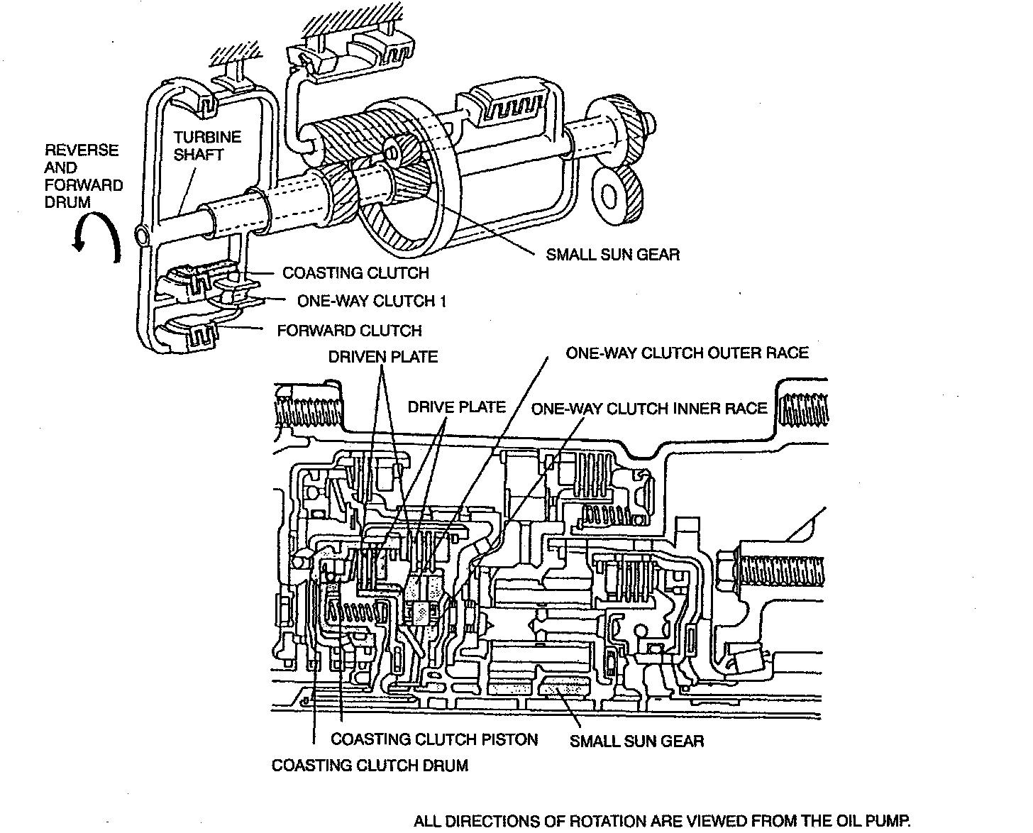 - The return spring is common for the forward clutch and the coasting clutch.