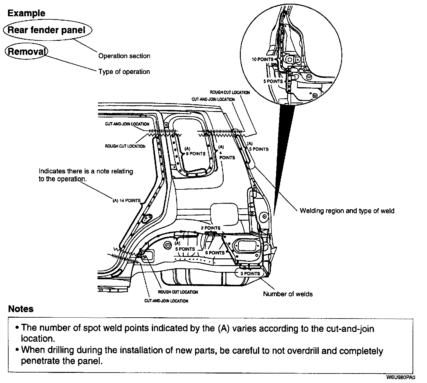 Efficient Replacement of Body Panels- This section contains information on the body panels in regard to the welding types, number of spot welds, and cut-and-join locations that are necessary for their removal and installation.