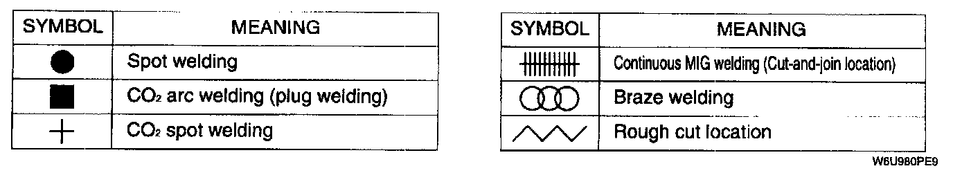 - The given 6 symbols are used to indicate the type of weld that is used when replacing body panels.