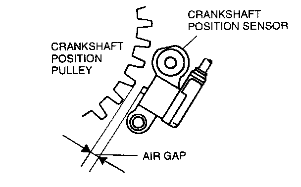 2. Measure the air gap between the crankshaft pulley projection and the crankshaft position sensor by using a feeler gauge.