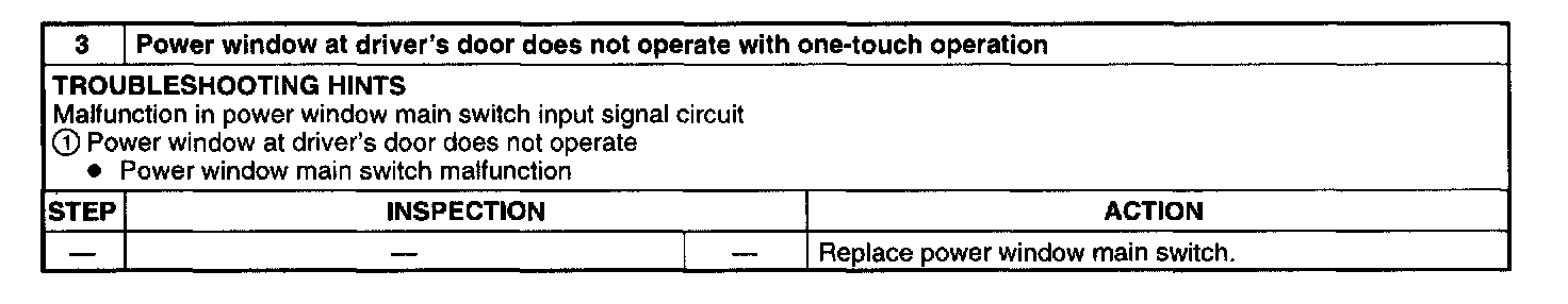 3. Power Window One-Touch Operation Inoperative