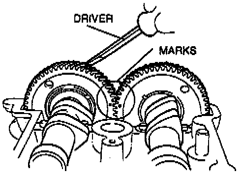 Install the camshafts so that the intake camshaft gear mark and exhaust camshaft gear mark align.