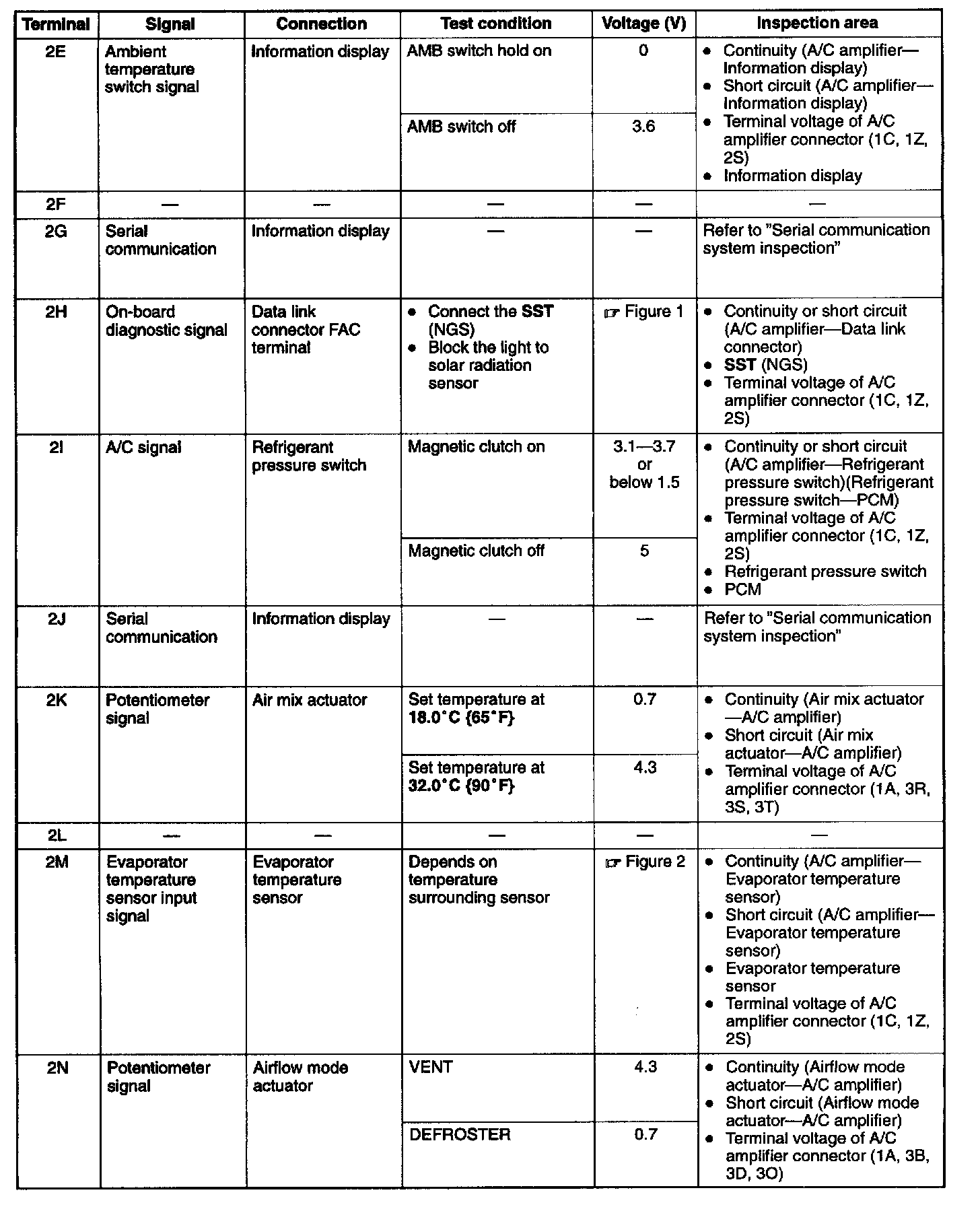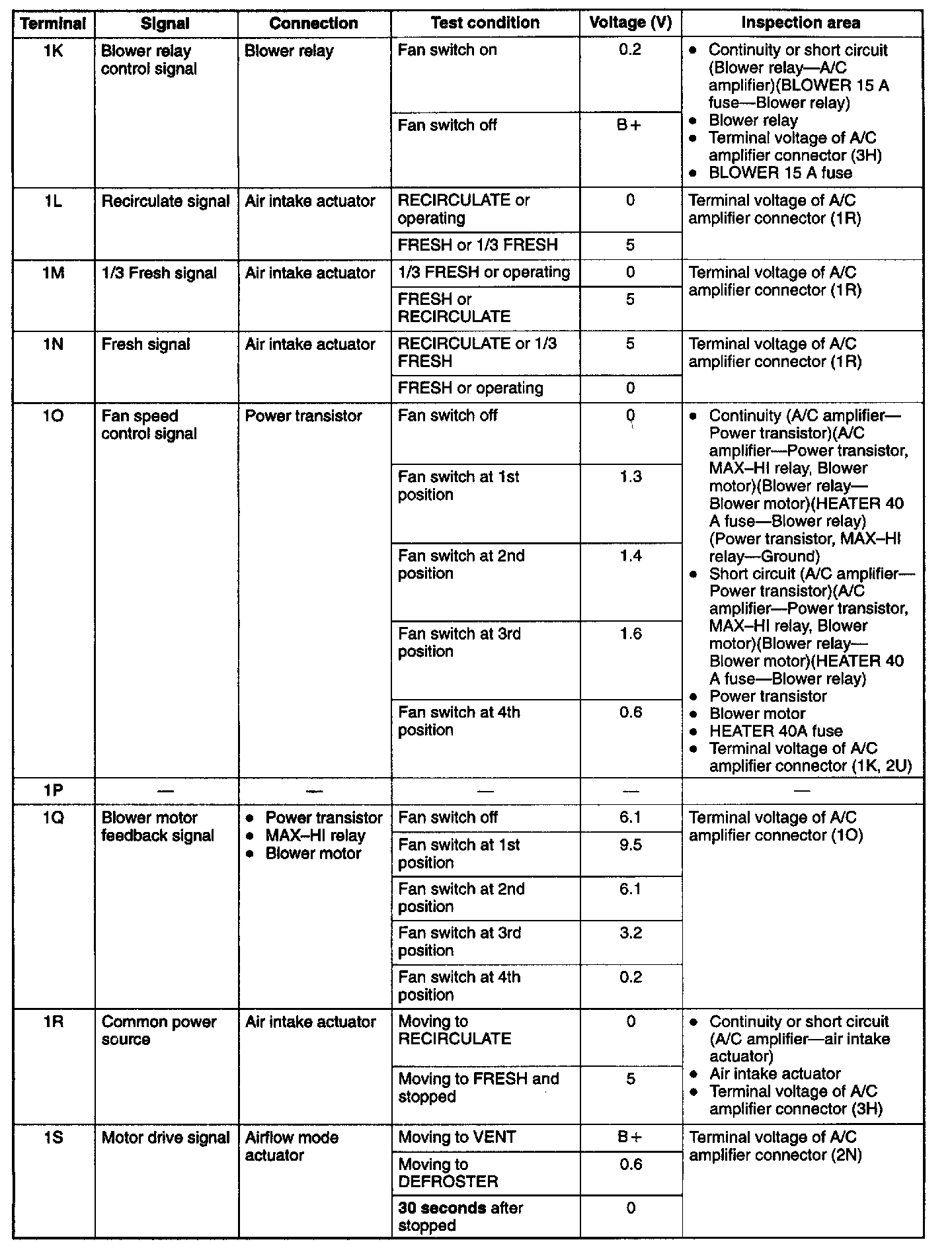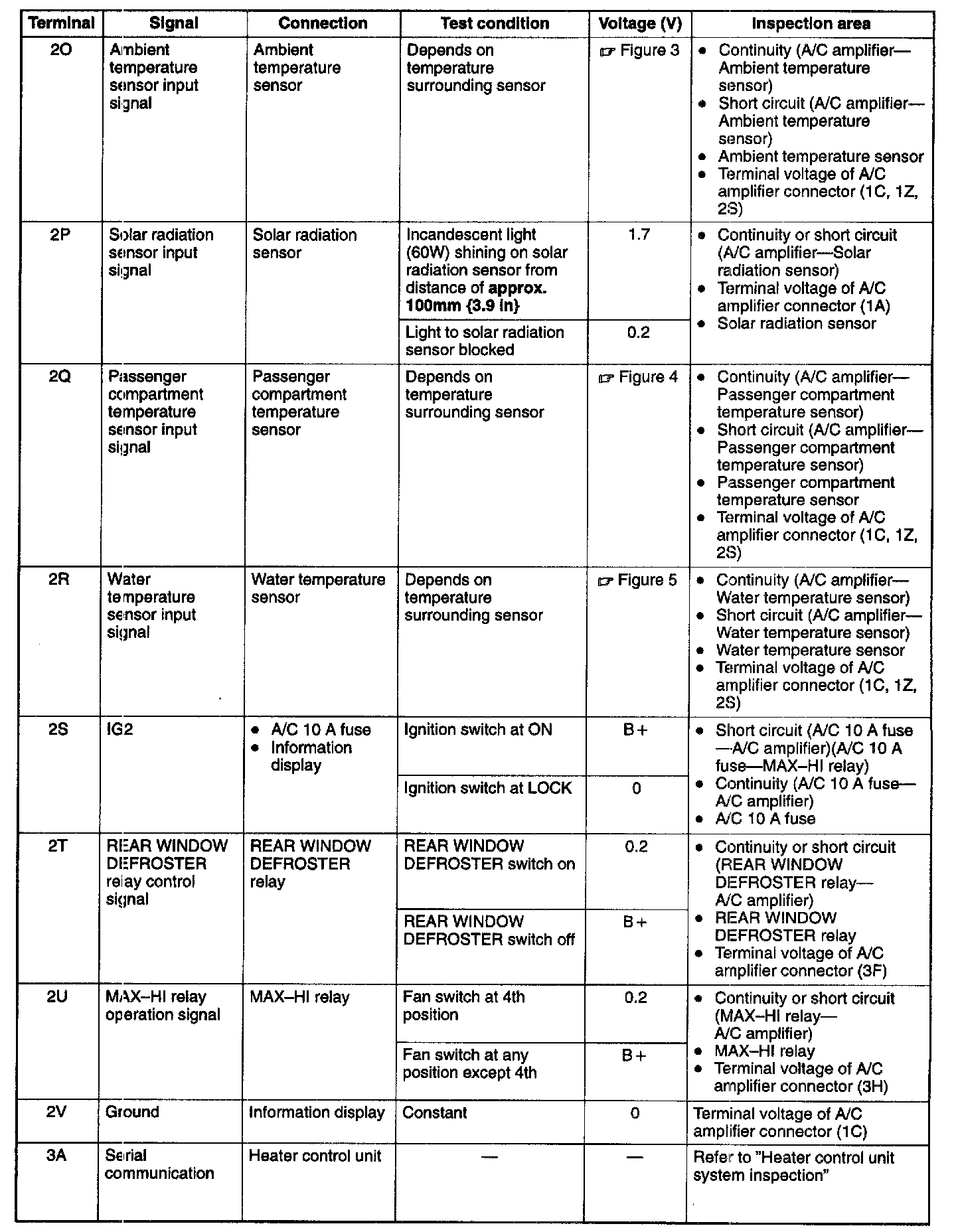 4. Measure the voltage at each A/C amplifier terminal and refer to the terminal voltage list.
