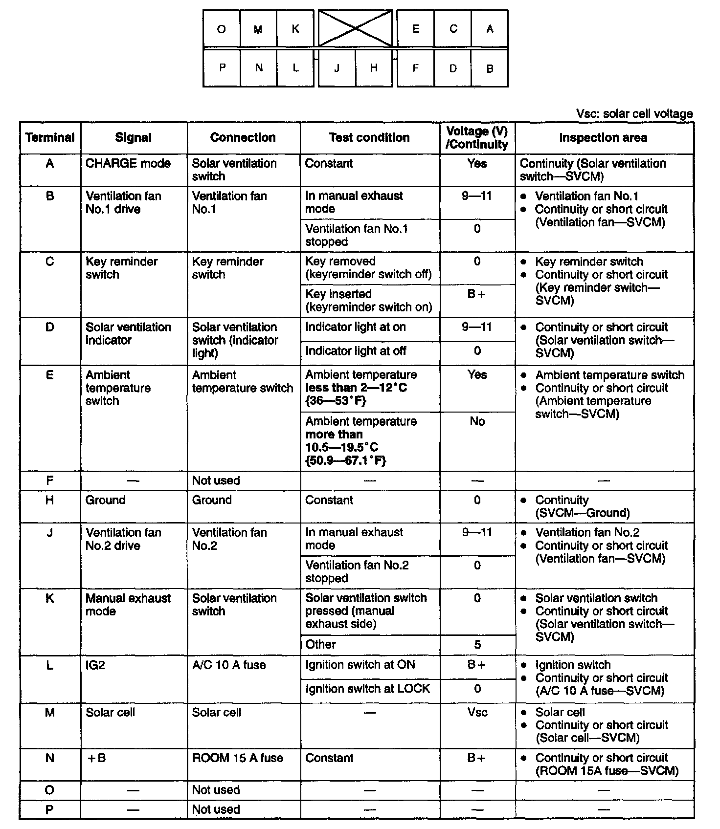 1. Measure the voltage at the terminal wires of the SVCM connector.