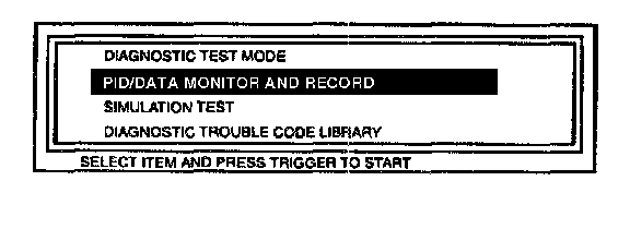 2. Referring to the NGS instruction manual, select the "PID DATA MONITOR AND RECORD" and press TRIGGER.