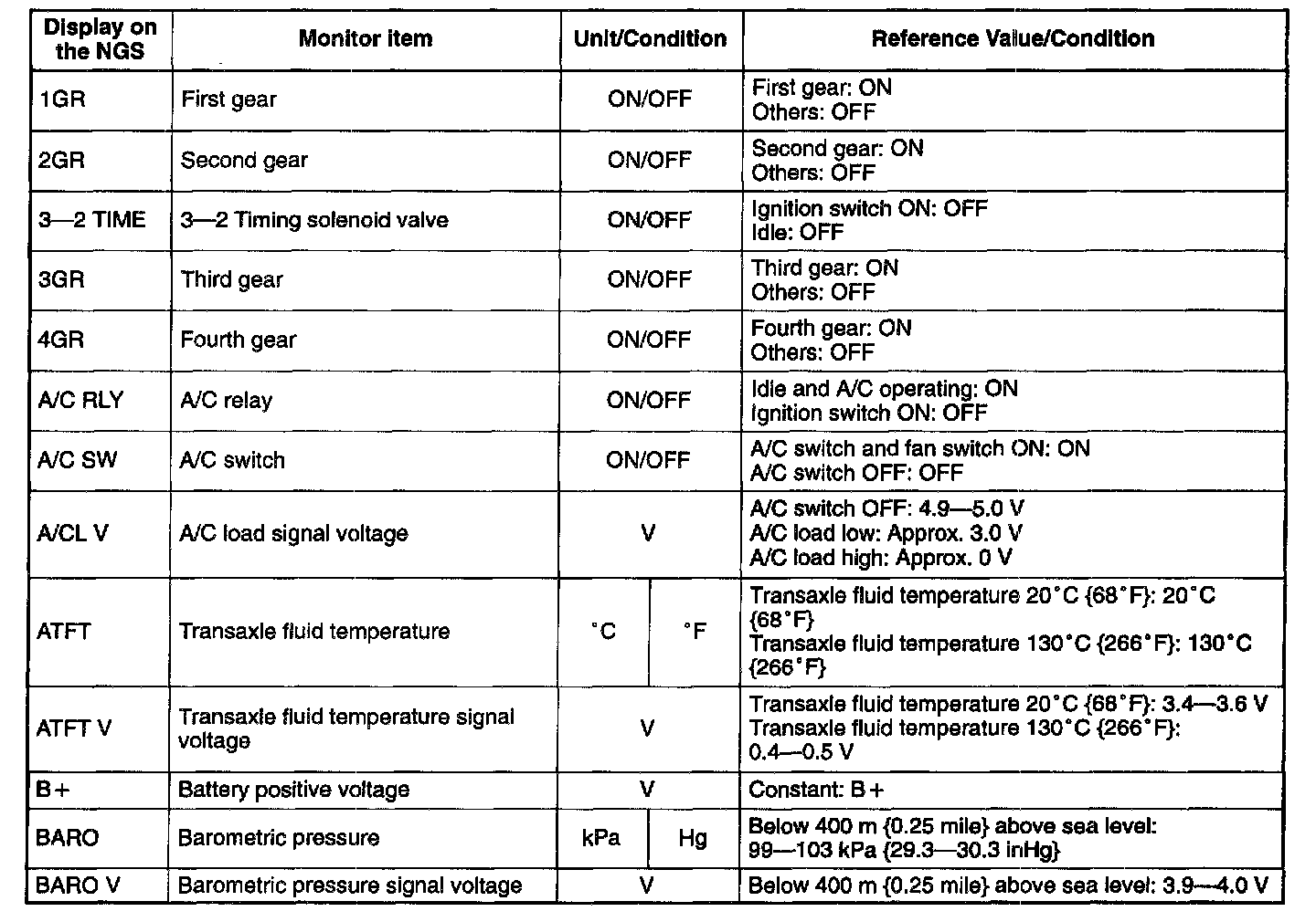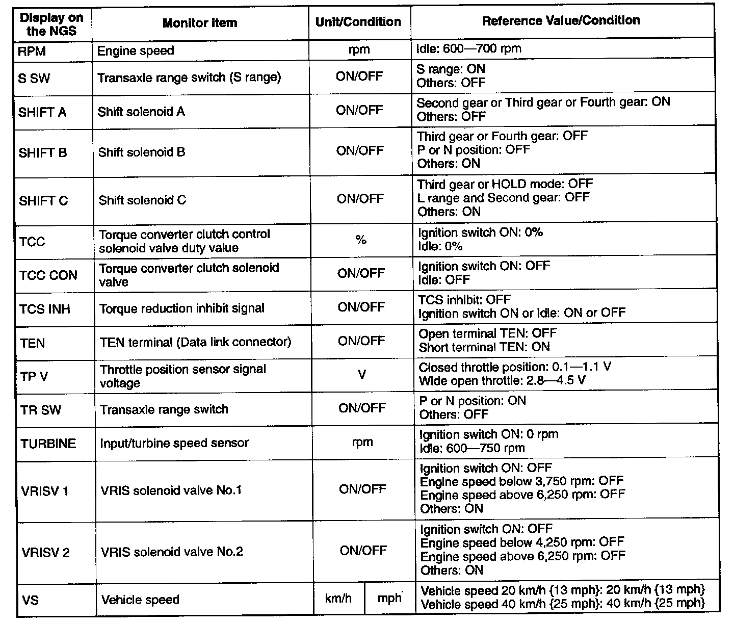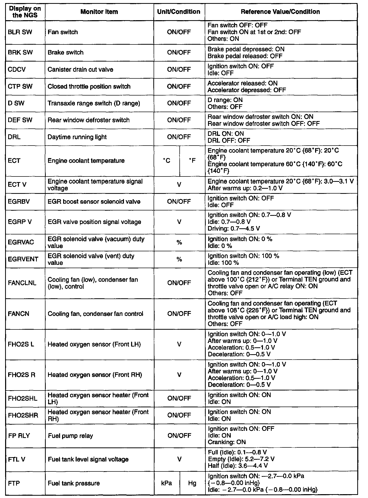 5. Carry out inspection referring to PID/DATA MONITOR table.