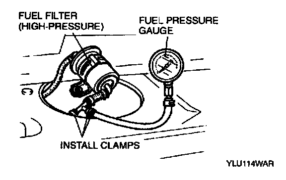 3. Install hose clamps to secure the fuel pressure gauge to the fuel filter and the main hose.