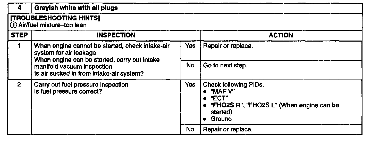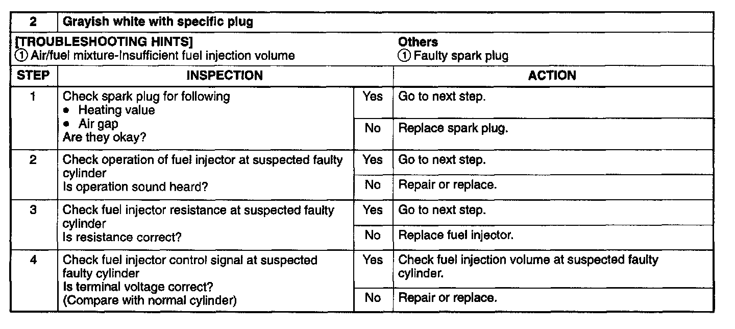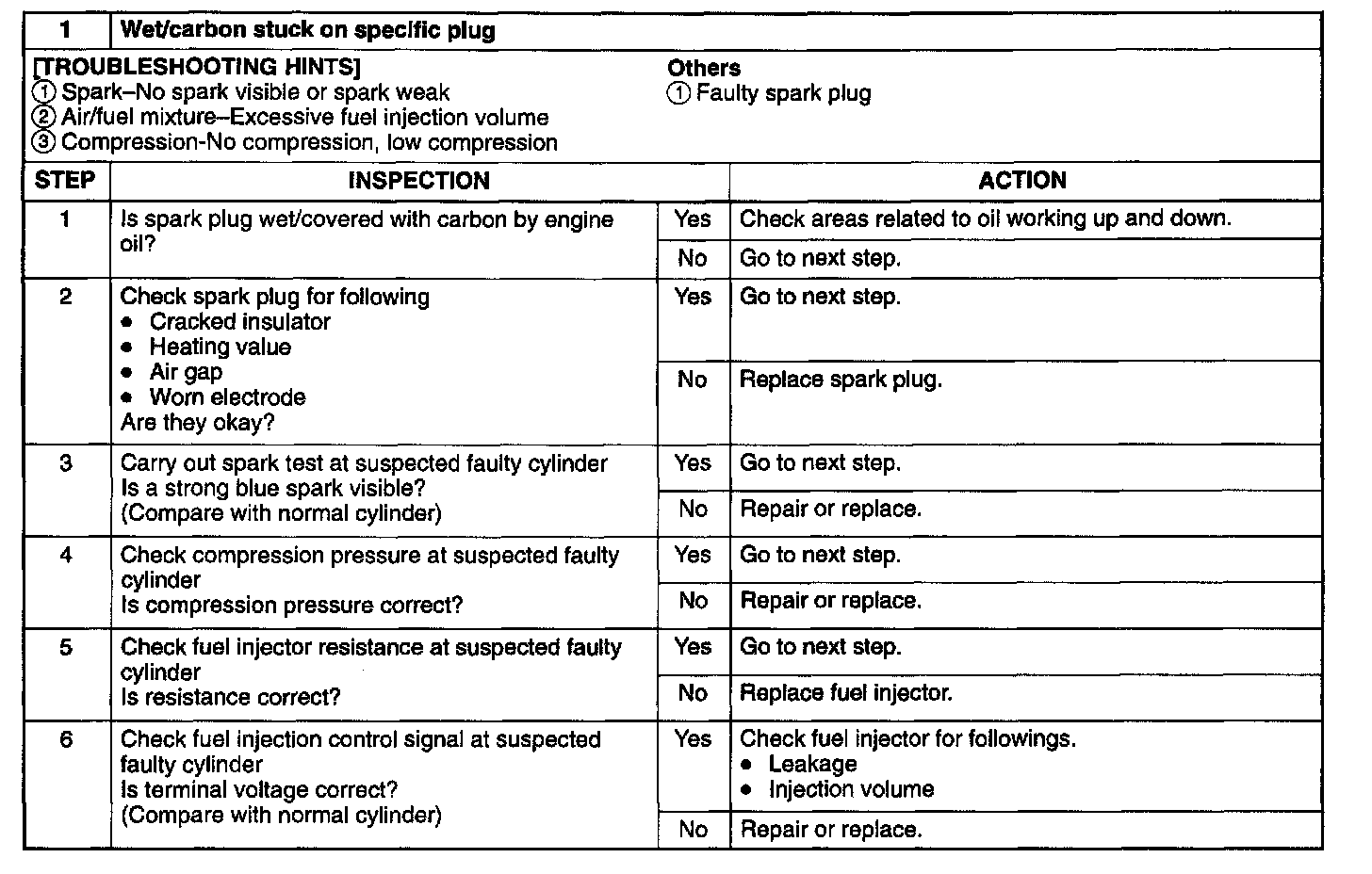 PURPOSEBy checking condition of the spark plugs, judgement whether problem is related to a specific cylinder or all cylinders is possible.