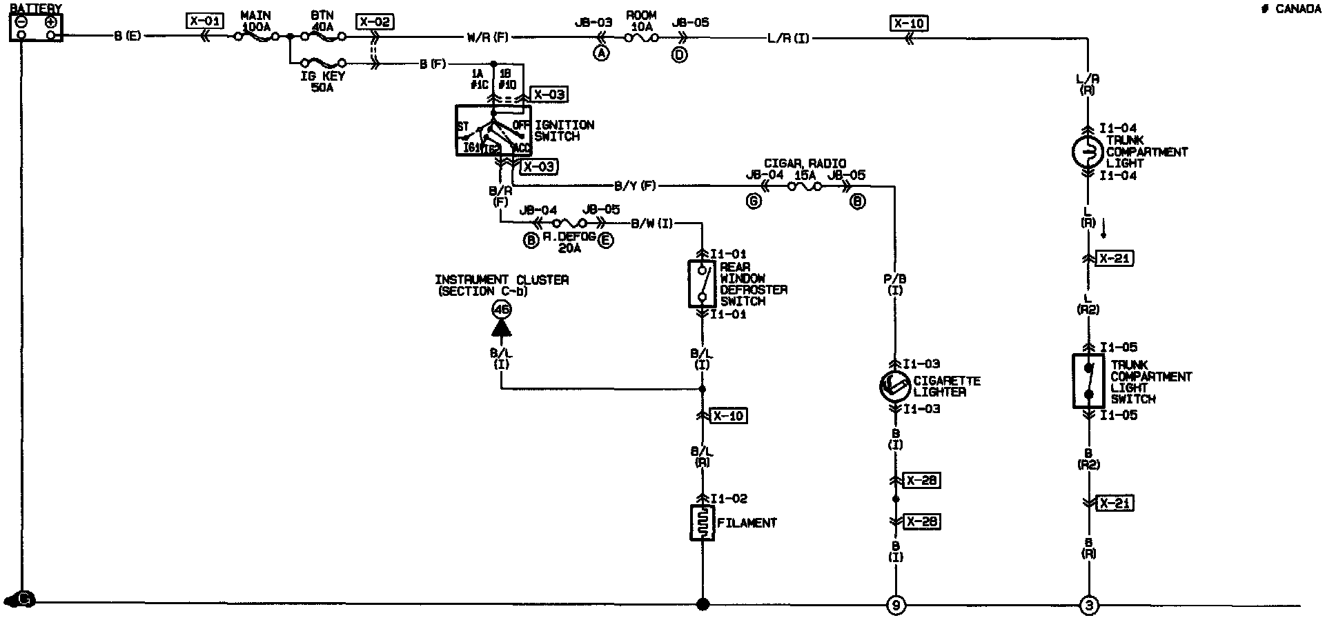 Rear Window Defroster/Cigarette Lighter/Trunk Compartment Light: