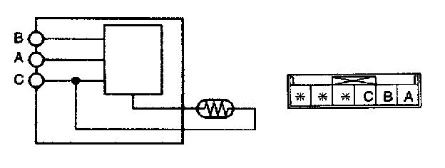 1. Remove the A/C amplifier.2. Connect battery positive voltage to terminal A and ground to terminal C of the A/C amplifier.