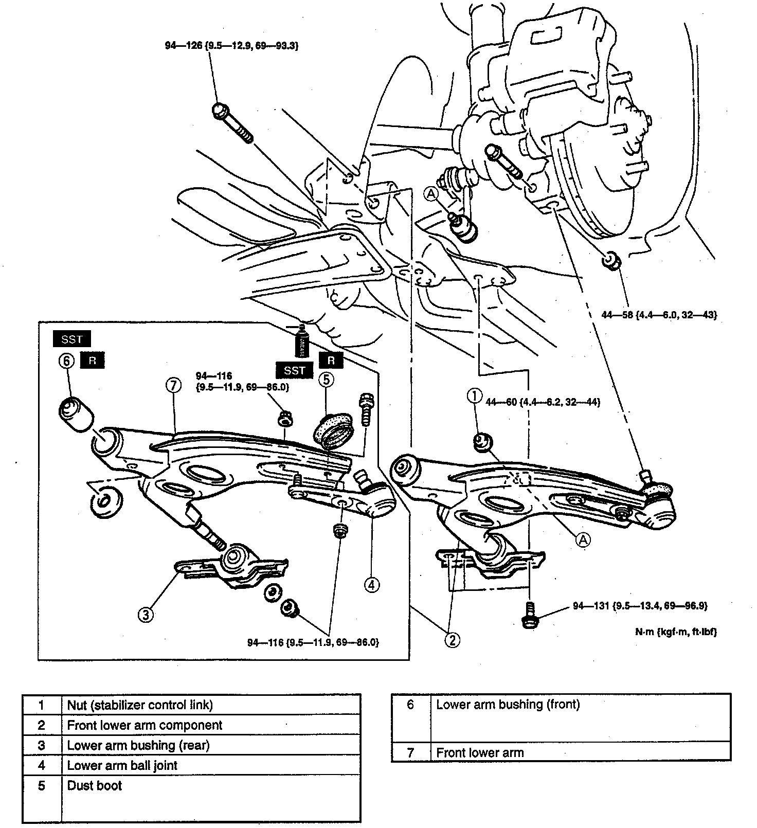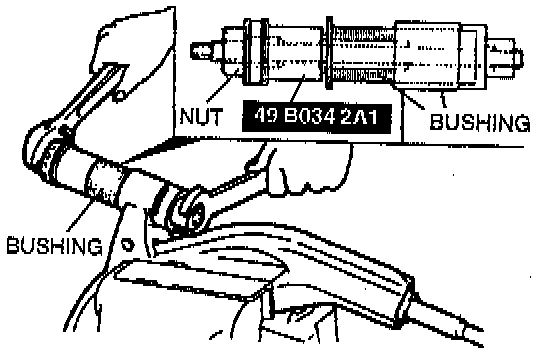 2. Set the Special Service Tool (SST) to the lower arm and remove the bushing.