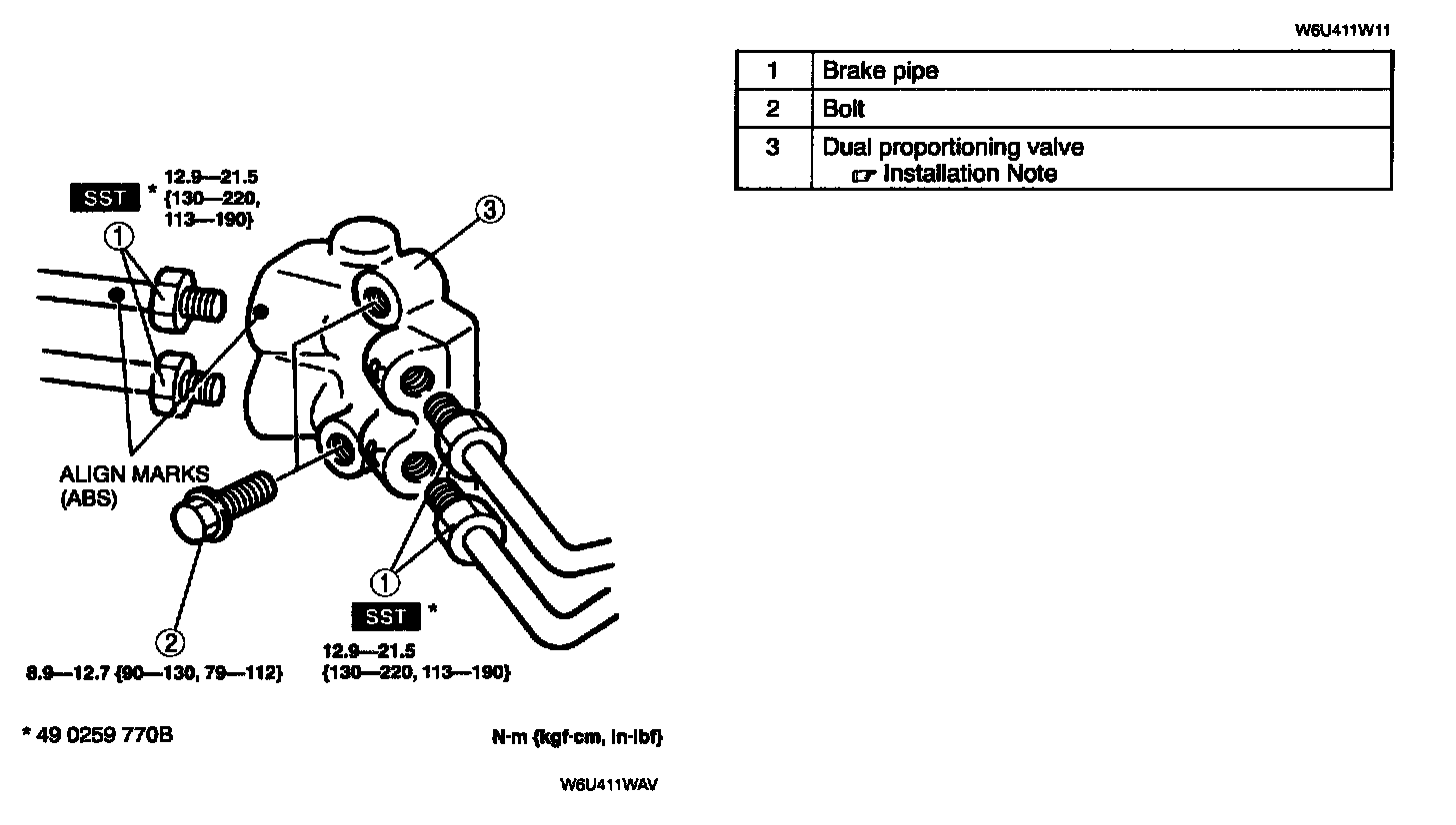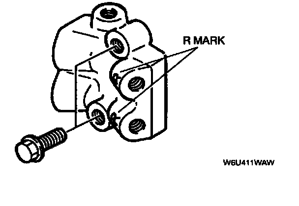 - Install the dual proportioning valve so that the R mark faces right side of the vehicle.