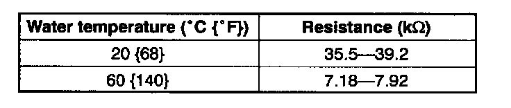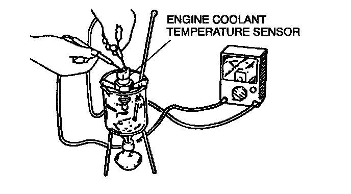 1. Remove the engine coolant temperature sensor.2. Place the engine coolant temperature sensor in water with a thermometer and heat the water gradually.