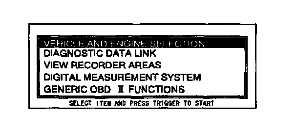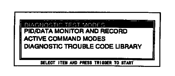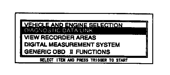 7. Move the cursor to DIAGNOSTIC DATA LINK in the main menu screen. Press the trigger key to enter into menu system diagnostics.