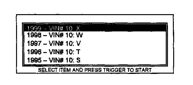 4. Move the cursor to 1999 - VIN #10:X. Press the trigger key to enter this selection.