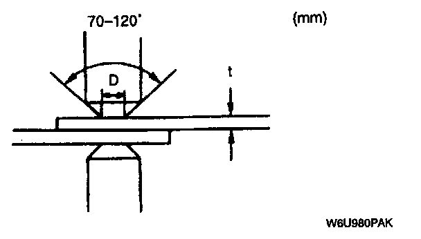 - The shape of the spot welder tip is D = (2 x t) + 3. If the upper panel thickness is different from that of the under panel, adjust to the thinner one.