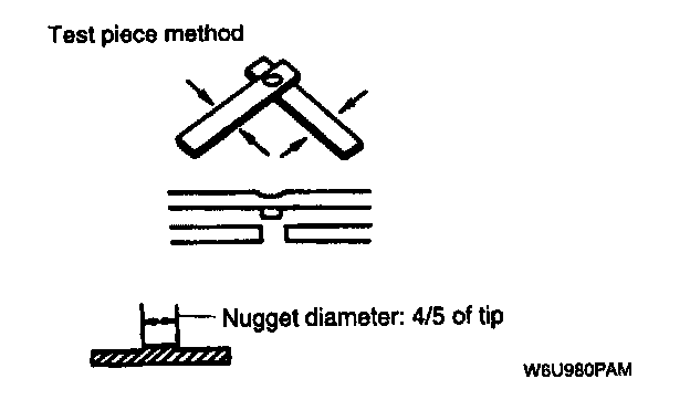 - Before spot welding, make a trial weld using the same material as the body panel to check the weld strength.