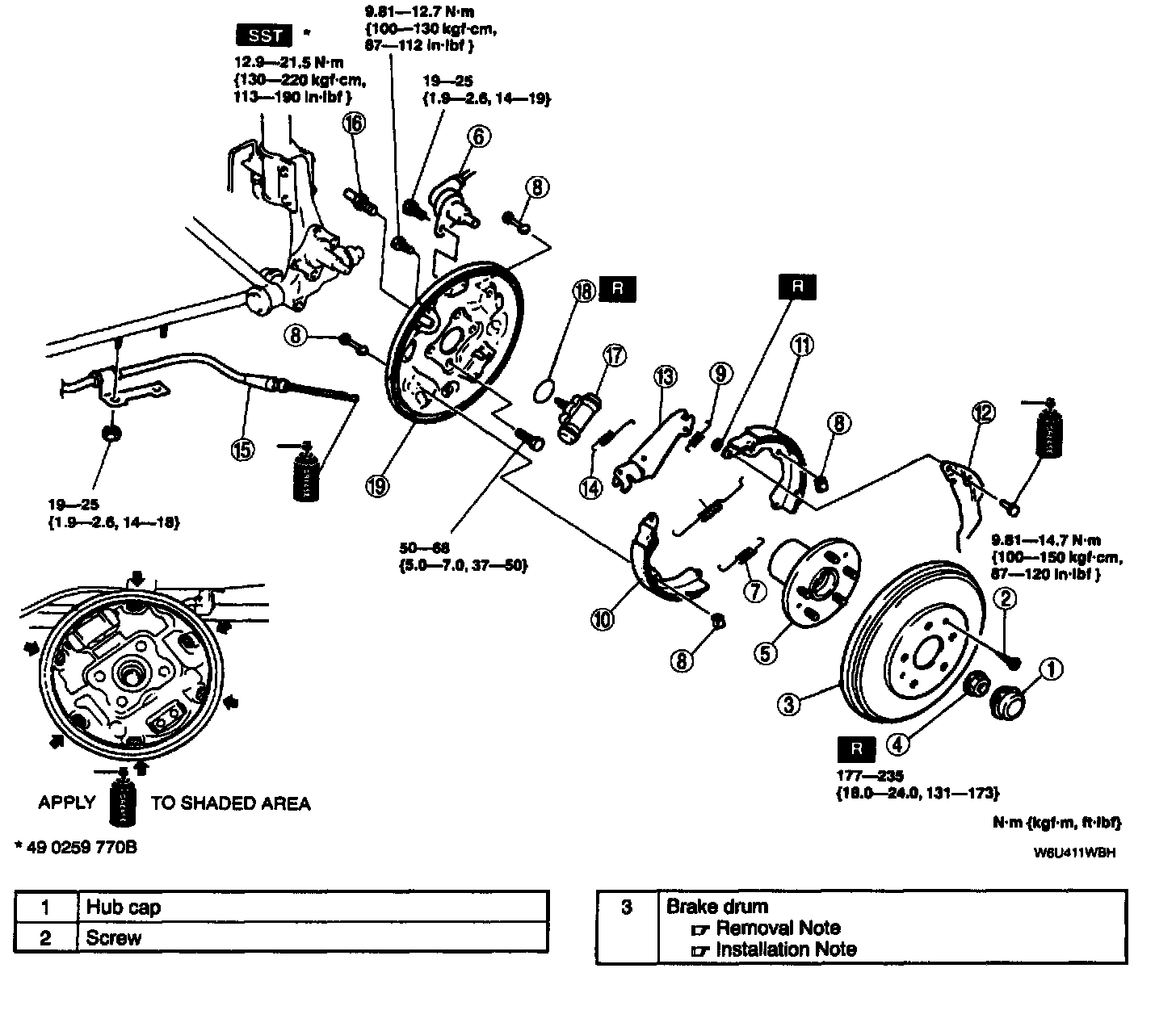 - Mark the wheel hub bolt and brake drum before removal for reference during installation.