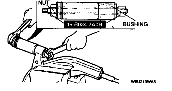 1. Cut away the projecting rubber of the lower arm bushing.