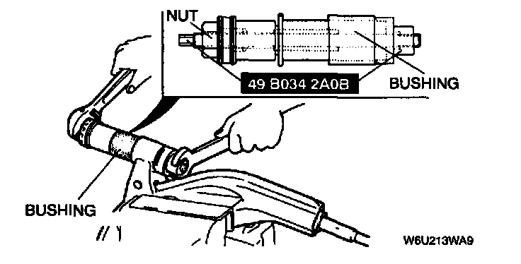 - Install the new bushing, and pull it into the lower arm by using the SST.