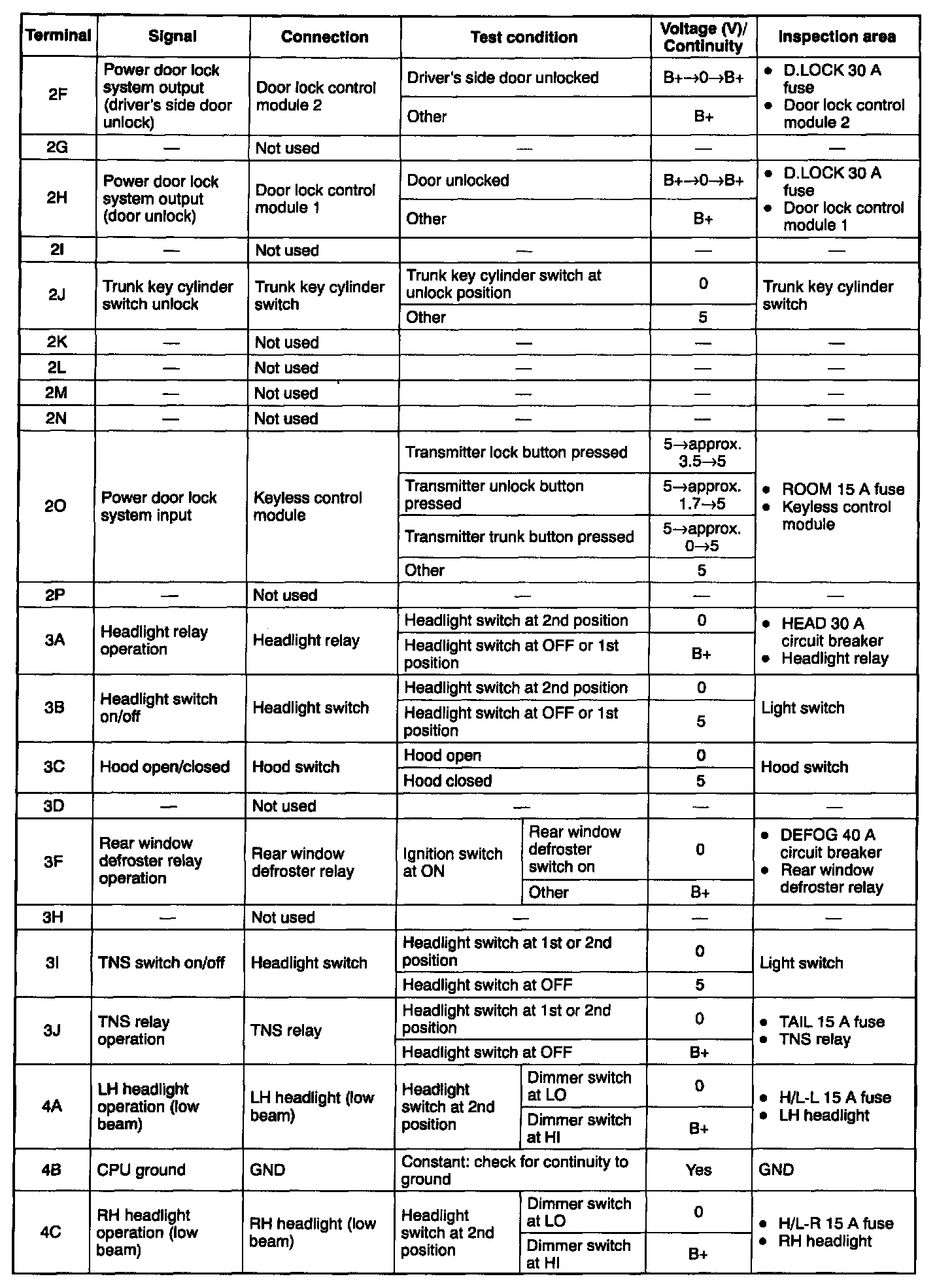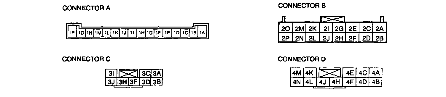Terminals except 4B and 4D of connector D