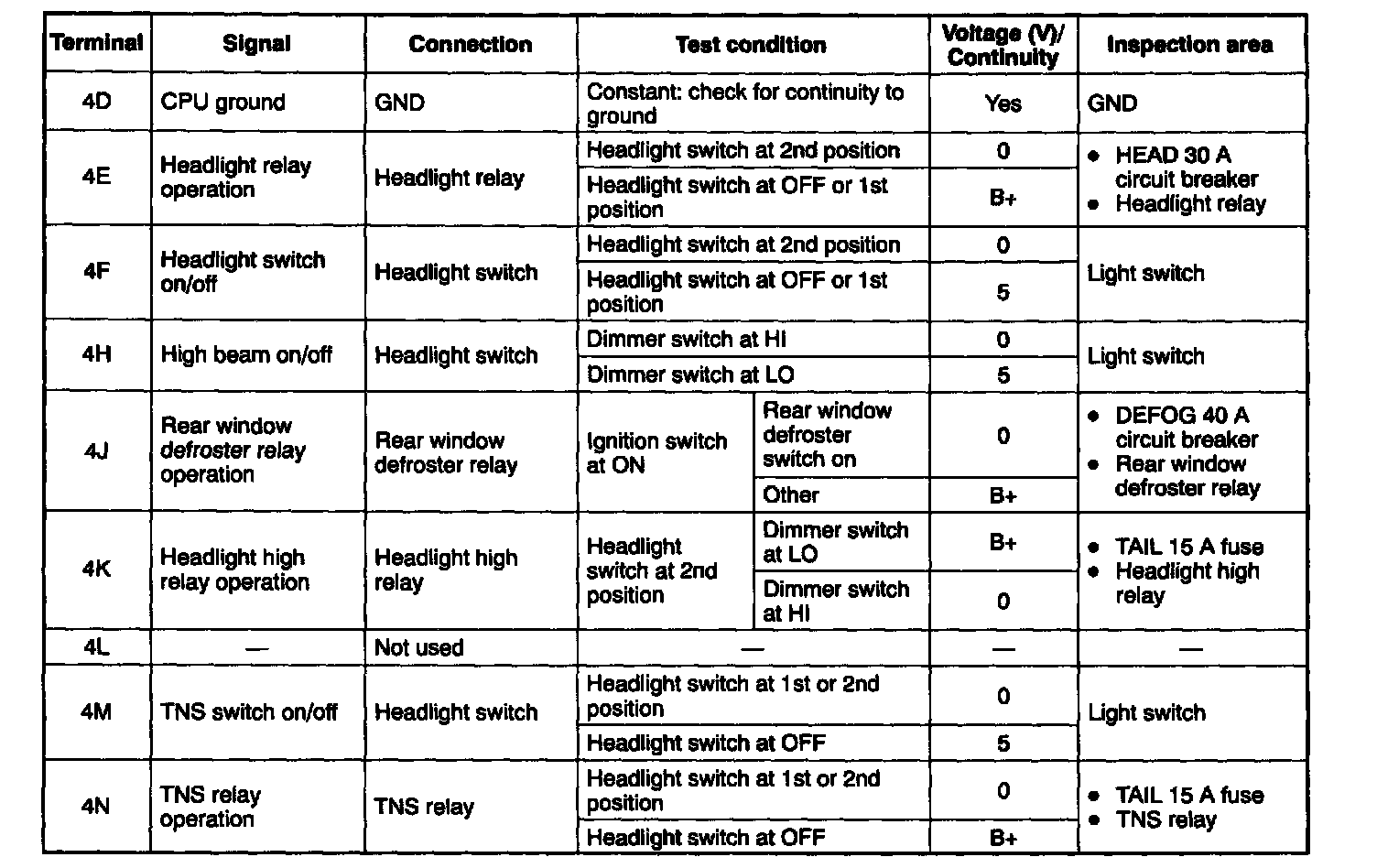 - Disconnect the CPU connector before checking for continuity at terminals 4B and 4D as shown in the figure.