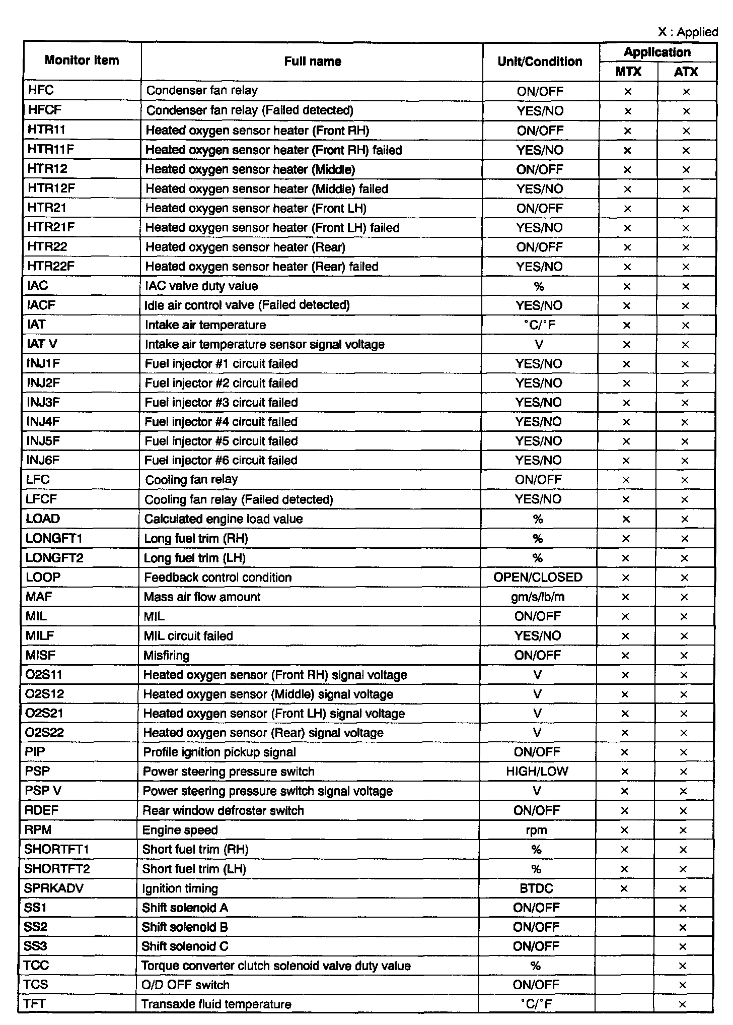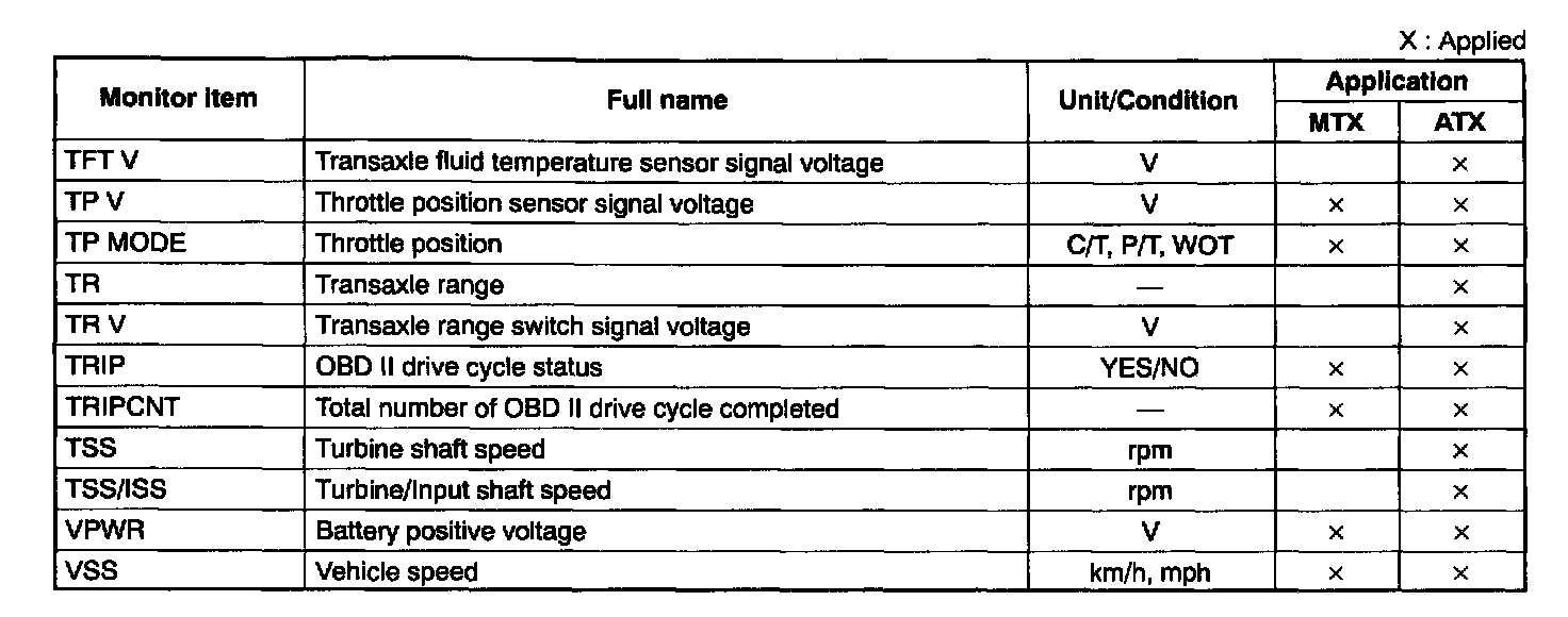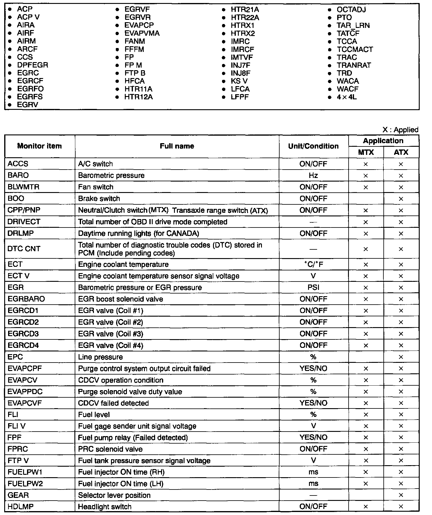 NOTE: The above PIDs may be displayed on the NGS tester, but they are not used for inspection, because these device are not applied to this model.