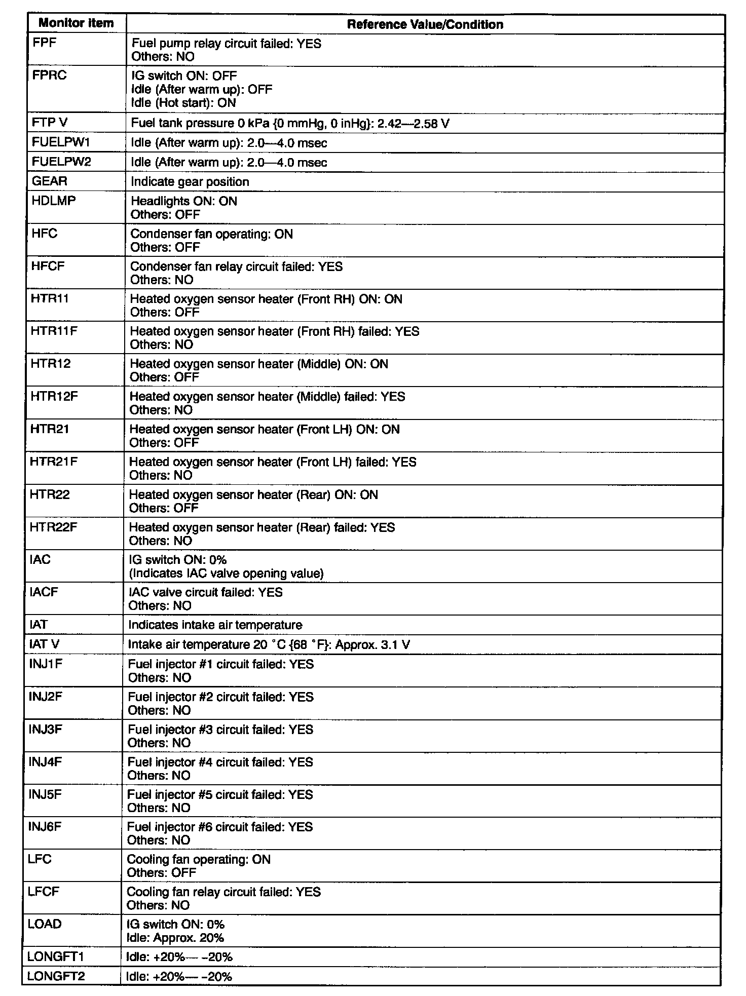 5. Carry out inspection referring to PID/DATA MONITOR table.