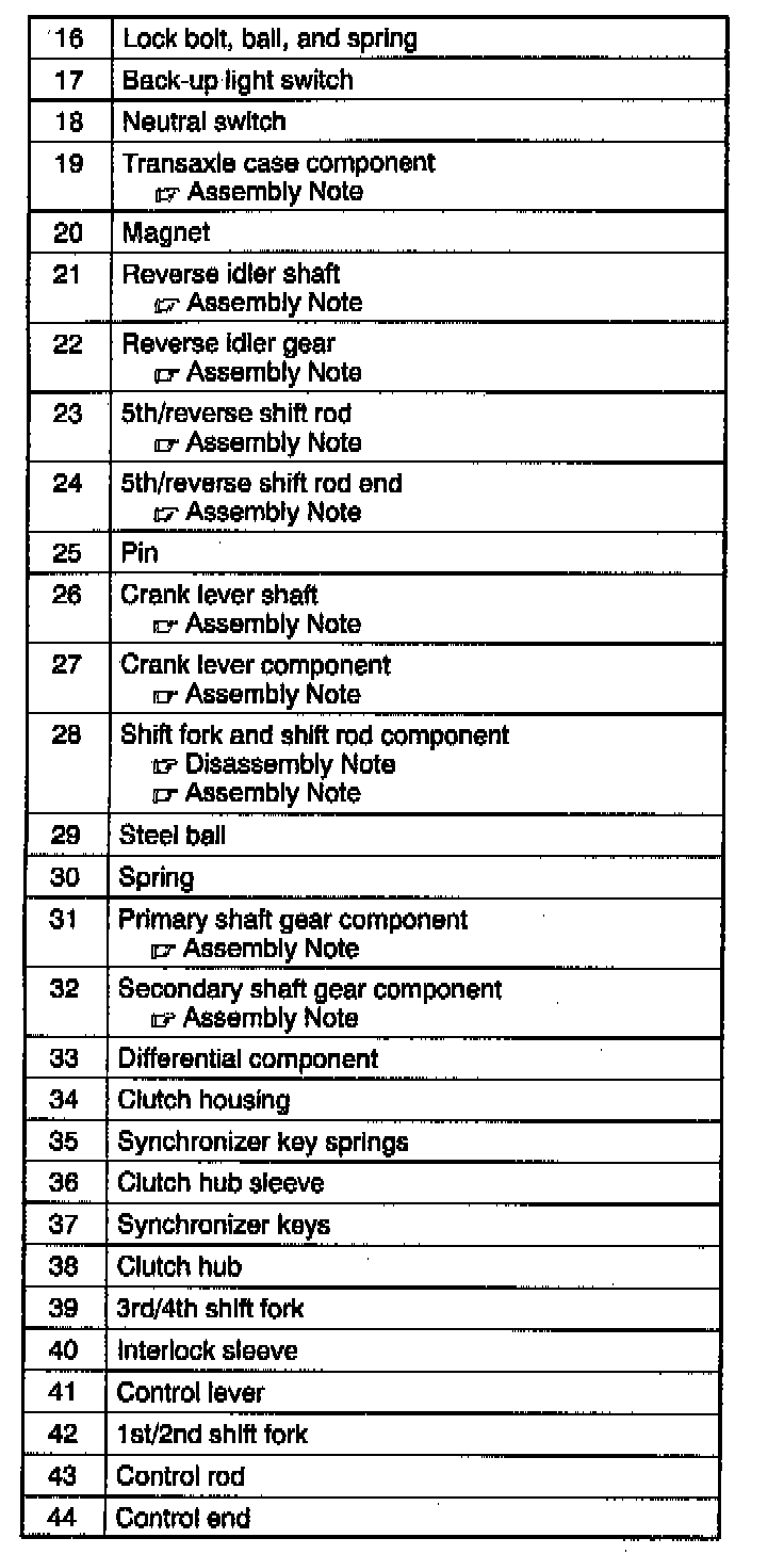 SHIFT FORK AND SHIFT ROD COMPONENT DISASSEMBLY NOTE