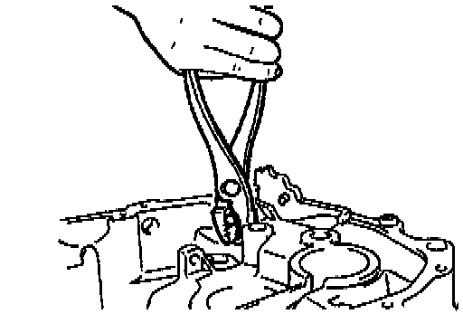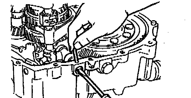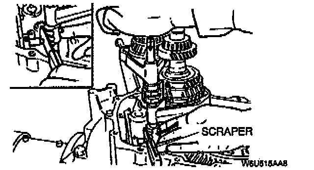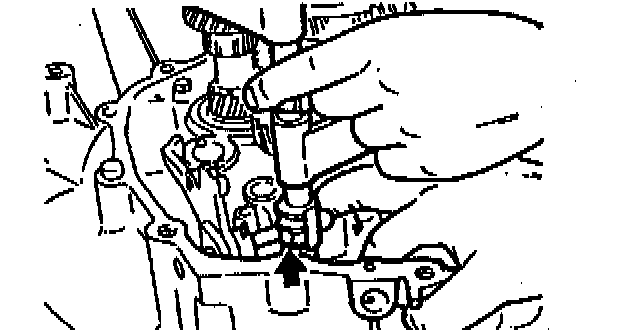 3. With the edge of the control end against the scraper, push the control end in the direction of the arrow so that the ball goes into the shaft. This will line up the rod with the shift rod coupling hole in the clutch housing.