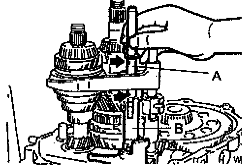 1. Install the shift rod A into the shift rod end B.
