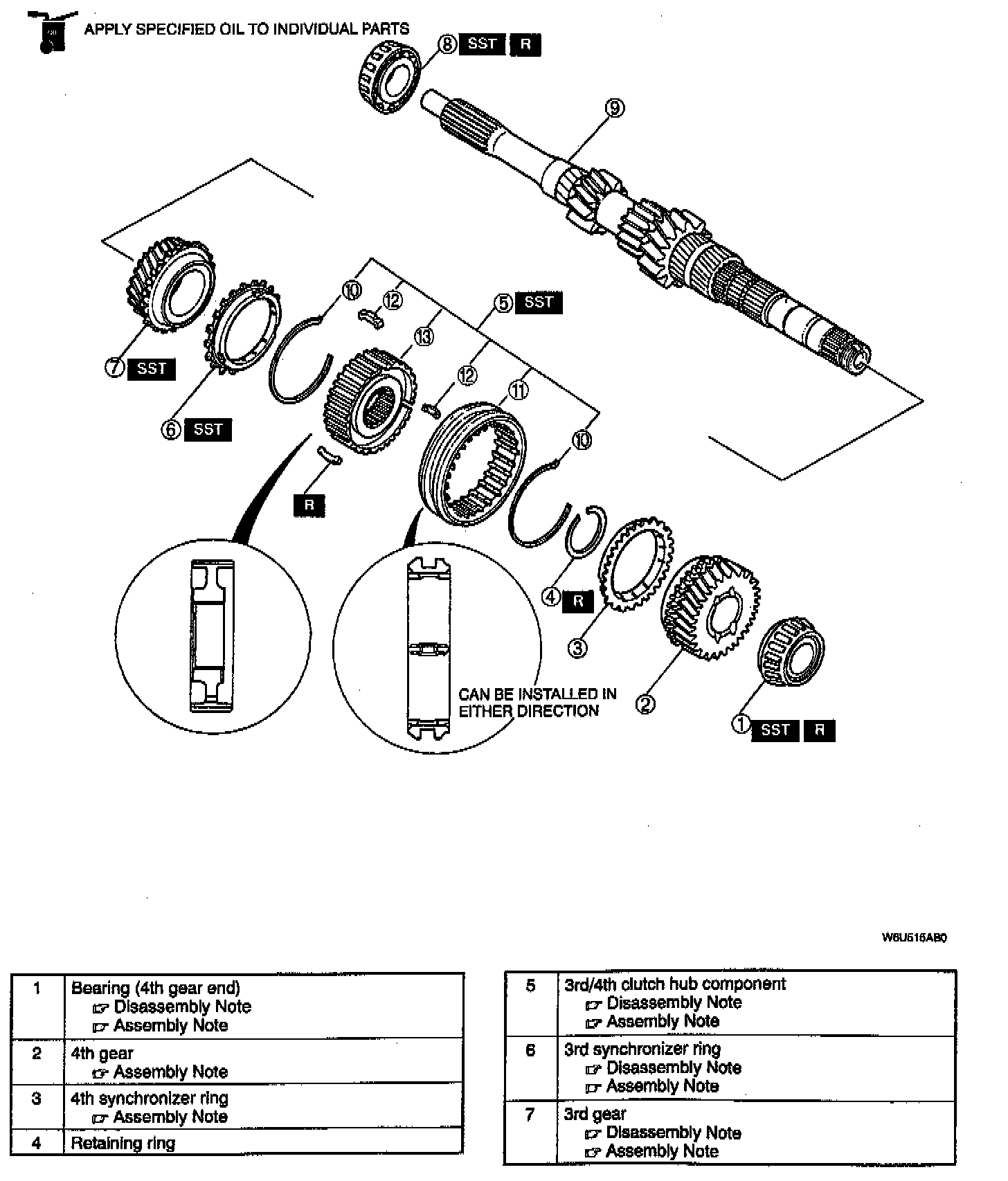 4TH SYNCHRONIZER RING, 4TH GEAR, BEARING (4TH GEAR END) ASSEMBLY NOTE