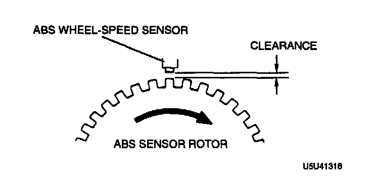 2. Verify the clearance between the ABS wheel-speed sensor and the sensor rotor.