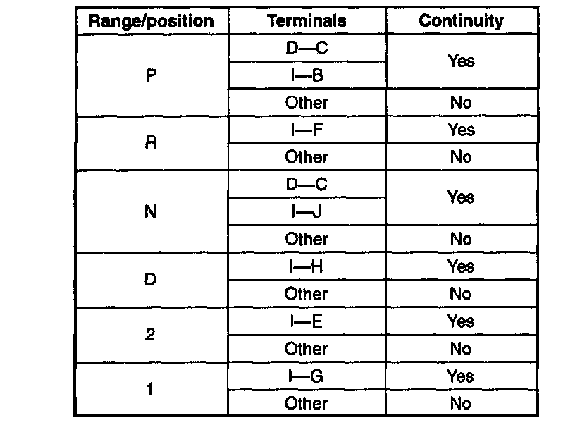 TRANSMISSION RANGE SWITCH INSPECTIONInspection Of Operation