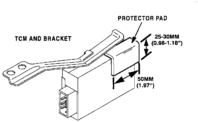 1. Previous to installing the TCM service part in the vehicle, install the protector pad using the specifications as shown.