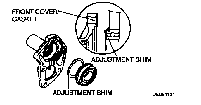 - Measure the clearance between the mainshaft front bearing and the bearing housing. If not within the specification, adjust the clearance by installing the correct adjustment shim(s).