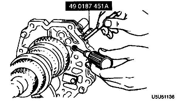 - Remove the mainshaft rear bearing by using the SSTs.