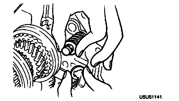 1. Slide the spring onto the 5th/reverse shift rod. While pressing the spring, install a new clip.