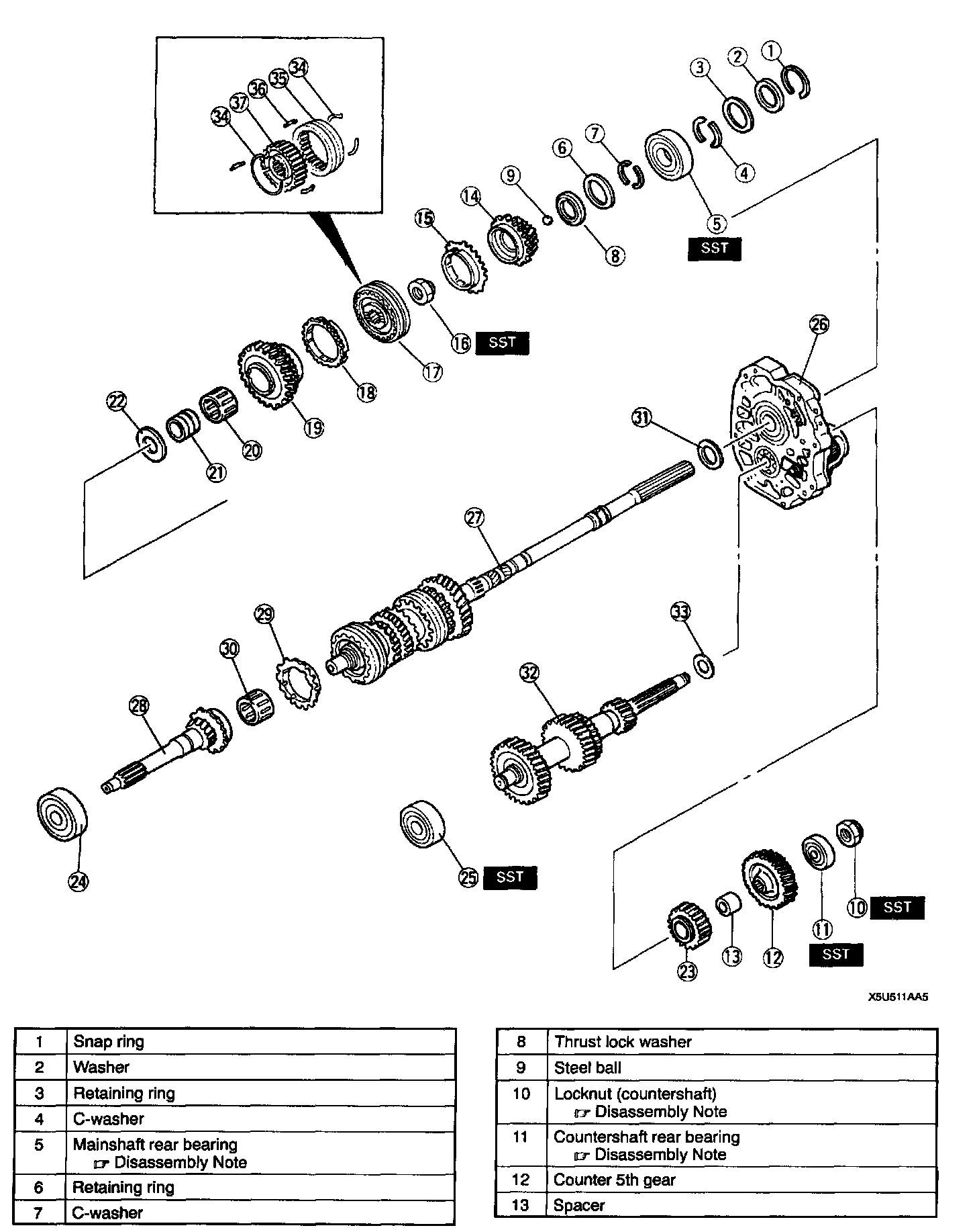 Mainshaft Rear Bearing Disassembly Note