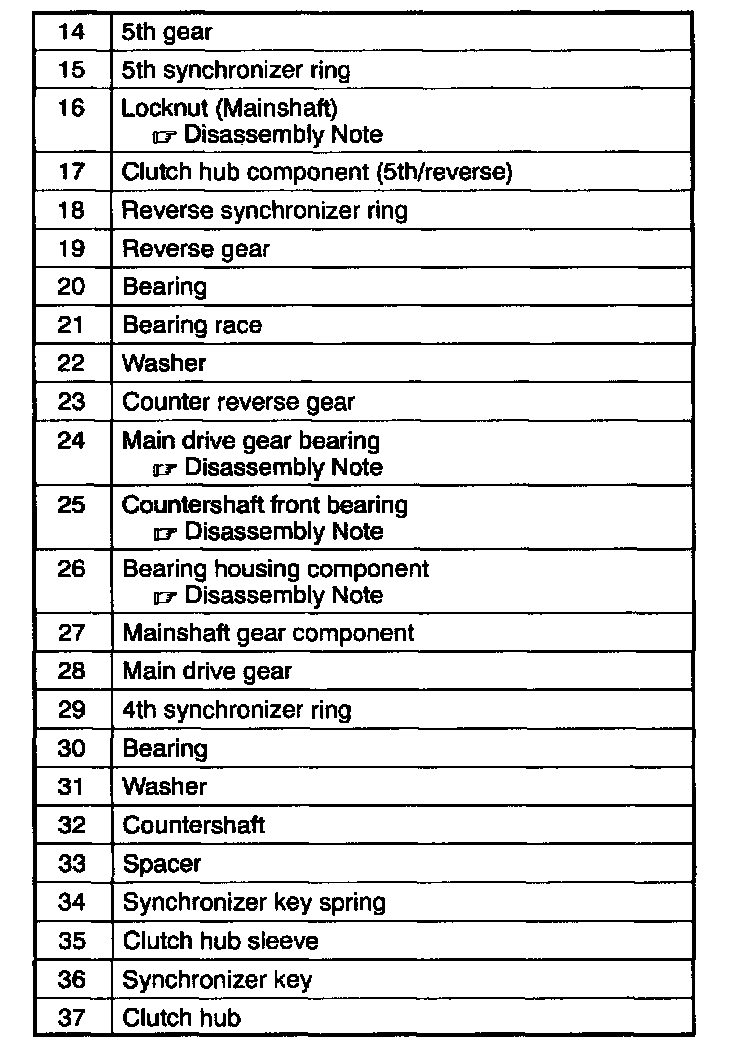 Mainshaft Gear Component And Countershaft Assembly Note