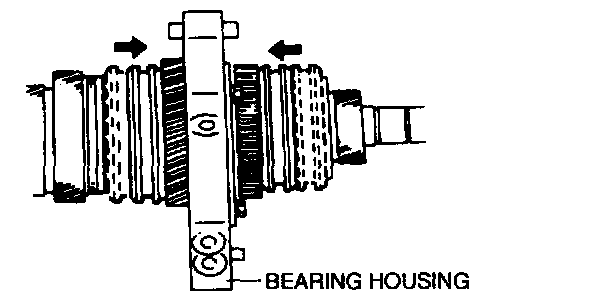 - Remove the bearing housing by lightly tapping the countershaft with a copper hammer.