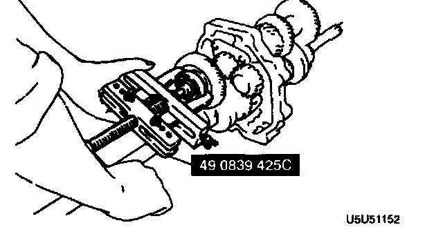 3. Connect the SST to the mainshaft and secure it in a vise.