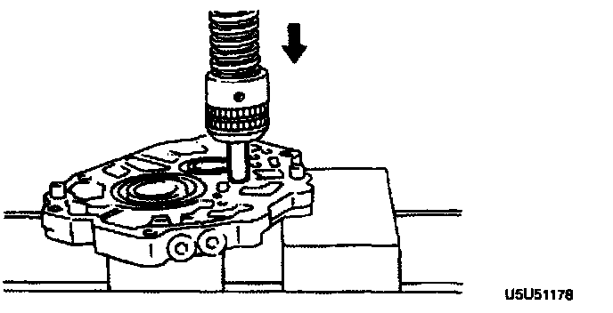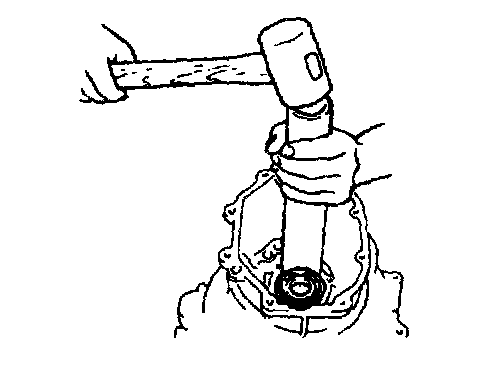 - Install the main drive gear bearing by using the SST, and secure it with a new snap ring.