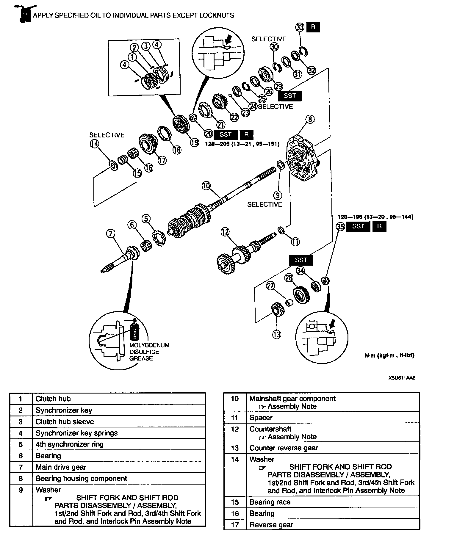 1st/2nd Clutch Hub Component Disassembly Note