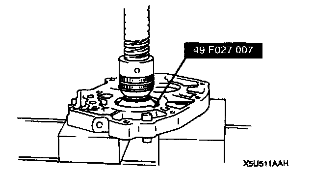 - Press the mainshaft front bearing into the bearing housing by using the SST.