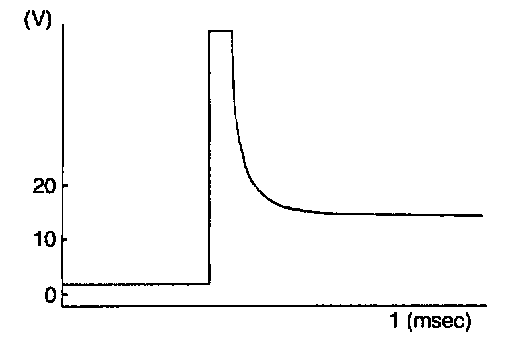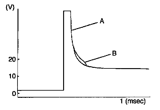 - Counter electromotive voltage A, generated when the three-way solenoid valve or the fuel injector is turned off from on, shows irregular convergence because induced electromotive voltage B, generated by the plunger return operation, is added to it.
