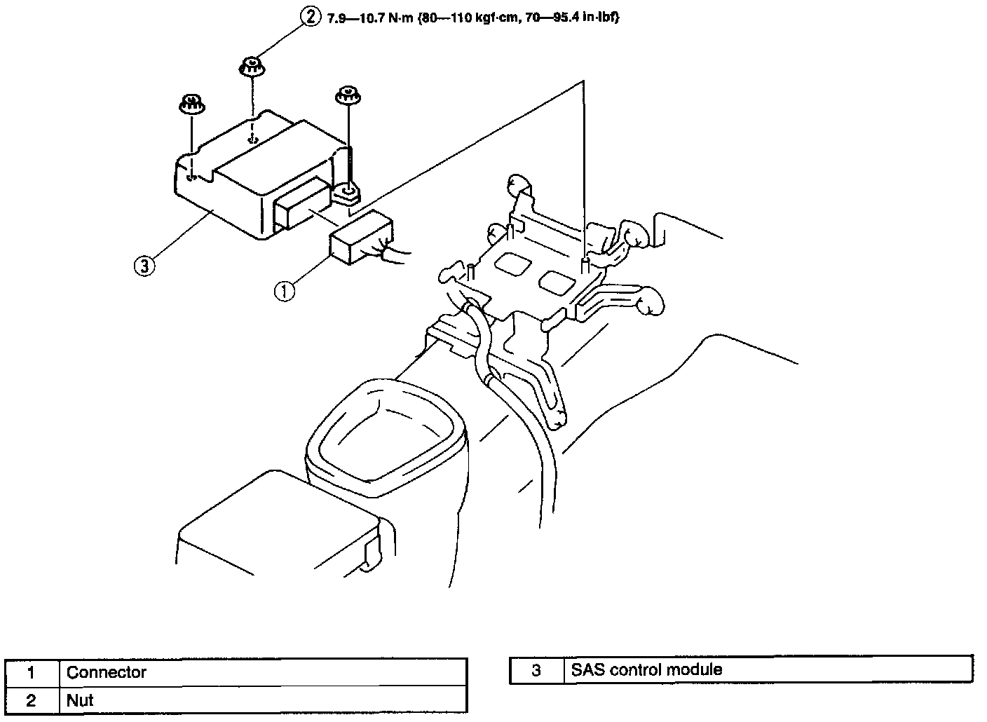 WARNING: Handling the SAS control module improperly can accidentally deploy the air bag module, which may seriously injure you. Read AIR BAG SYSTEM SERVICE WARNINGS before handling the SAS control module. (Refer to AIR BAG SYSTEM SERVICE WARNINGS.)1. Turn the ignition switch to LOCK.