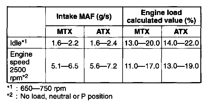 NOTE: The scan tool shows the MAF rate and load value.