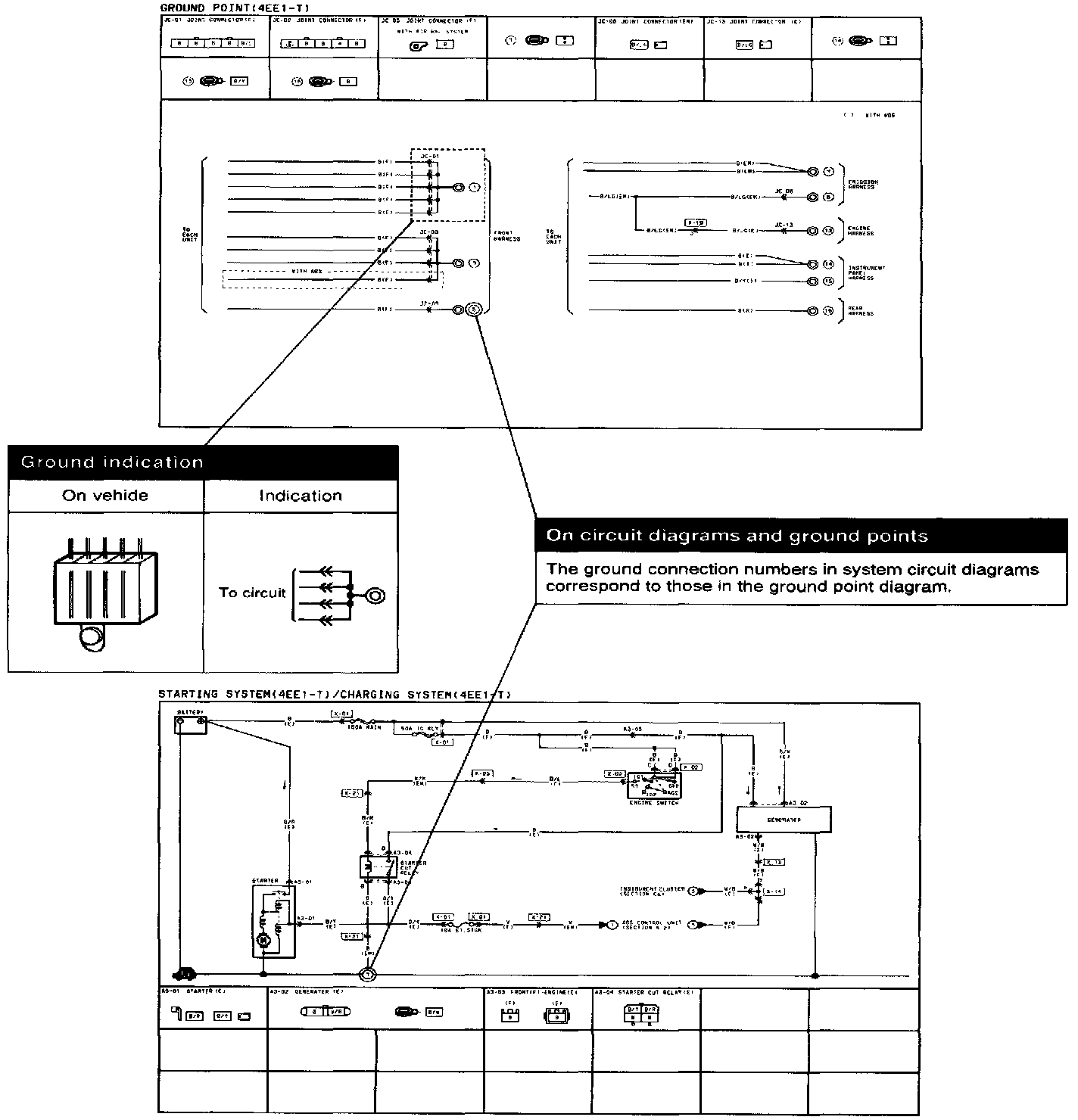 This shows ground points of the harness.